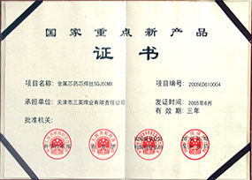 公司目前已經具備年產各類藥芯焊絲40000噸的生產能力,公司藥芯焊絲產品通過14國船級社認證。并通過GB/T19001-2000國際質量體系認證。公司產品獲國家級新產品證書...